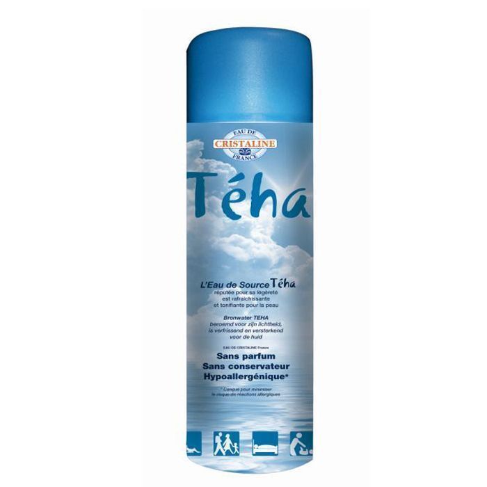 El brumizador con agua manantial Téha 500 refrescante, tonificante y hidratante.Necesario e indispensable a la hidratación, tranquilizadora, anti-irritante, aconsejado para las pieles sensibles del adulto, del niño y del niño de pecho. Sin perfume, sin conservator e hipoalergénico.