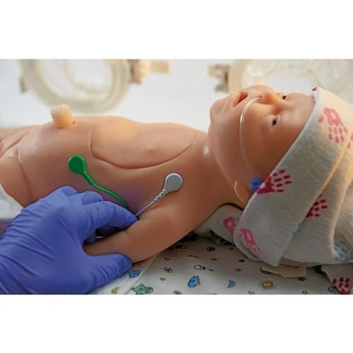 El modelo C.H.A.R.L.I.E. permite entrenarse principalmente en procedimientos de reanimación cardio-pulmonar (RCP) de recién nacidos, así como en procedimientos a seguir en caso de anomalías congénitas. Tiene muchas características que le ofrecen un entrenamiento completo y preciso. De hecho, el modelo viene con vías respiratorias, puntos de pulso manual palpables en 7 lugares diferentes, un sitio PICC en el brazo, una infusión intraósea, un tubo gastrointestinal (GI), colocación de tubo torácico, un ombligo transparente con acceso arterial y venoso. Con este modelo, puede realizar una simulación de ECG, cateterismo urinario para usar con órganos genitales intercambiables.