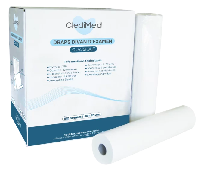 Cada sábana de examen ClediMed Clásica está empaquetada individualmente, garantizando una higiene óptima para cada paciente. Además, estas sábanas están fabricadas en Francia, garantizando calidad y cumplimiento de las normas más estrictas.