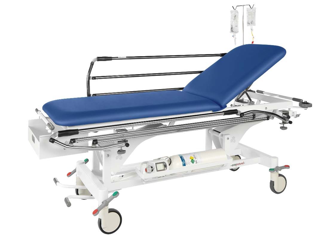 Esta camilla de examen hidráulica de 2 planos está diseñada para el transporte de pacientes en un entorno médico. Es por eso que está equipada con un portasueros. Para ofrecer aún más comodidad al profesional de la salud, es posible agregar opciones opcionales como: un portabotellas integrado en la camilla y un cajón de almacenamiento, que proporciona una solución de almacenamiento conveniente para suministros médicos.