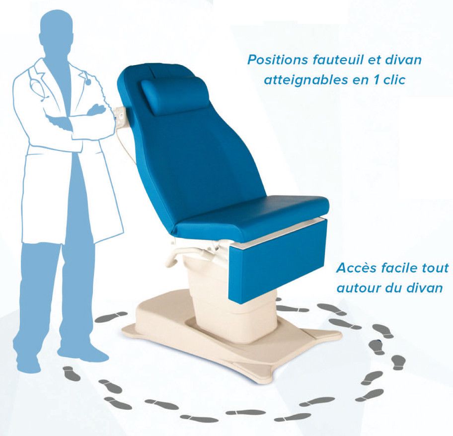 Fruto de tres años de colaboración con más de 200 médicos de cabecera, Promotal eMotio se adapta perfectamente a las necesidades de los profesionales sanitarios. Está equipado con un soporte de rodillo fijo y dos mandos para un uso simplificado y eficaz.