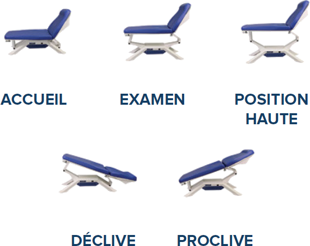Elija una camilla de exploración de gama alta con la camilla de exploración iQuest Lounge, diseñada para mejorar la eficacia de su consulta médica al tiempo que ofrece a sus pacientes un confort inigualable.