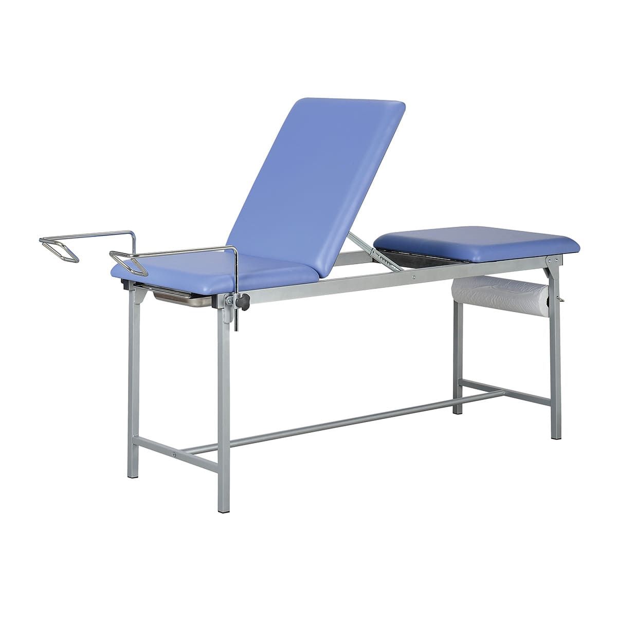 - Accesorios incluidos: Portarrollos, piernas, par de estribos (con tenazas), bandeja ginecológica de acero inoxidable