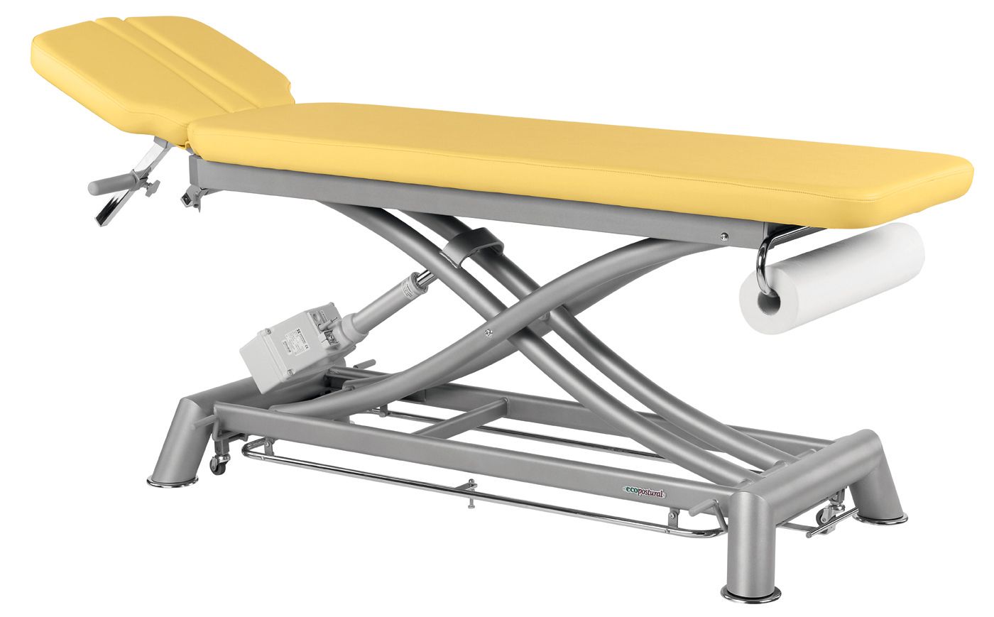 Camilla de masaje eléctrica 2 cuerpos con sistema periférico Ecopostural C7946 - Regulación de altura mediante motor eléctrico con sistema periférico - Portarrollos abatible, cromado incorporado de serie - Altura regulable: 48 - 97 cm - Dimensión estándar : 50 x 188 cm - Garantía 3 años