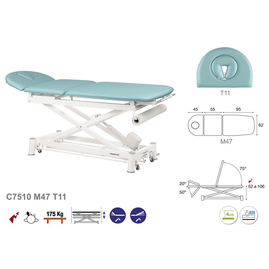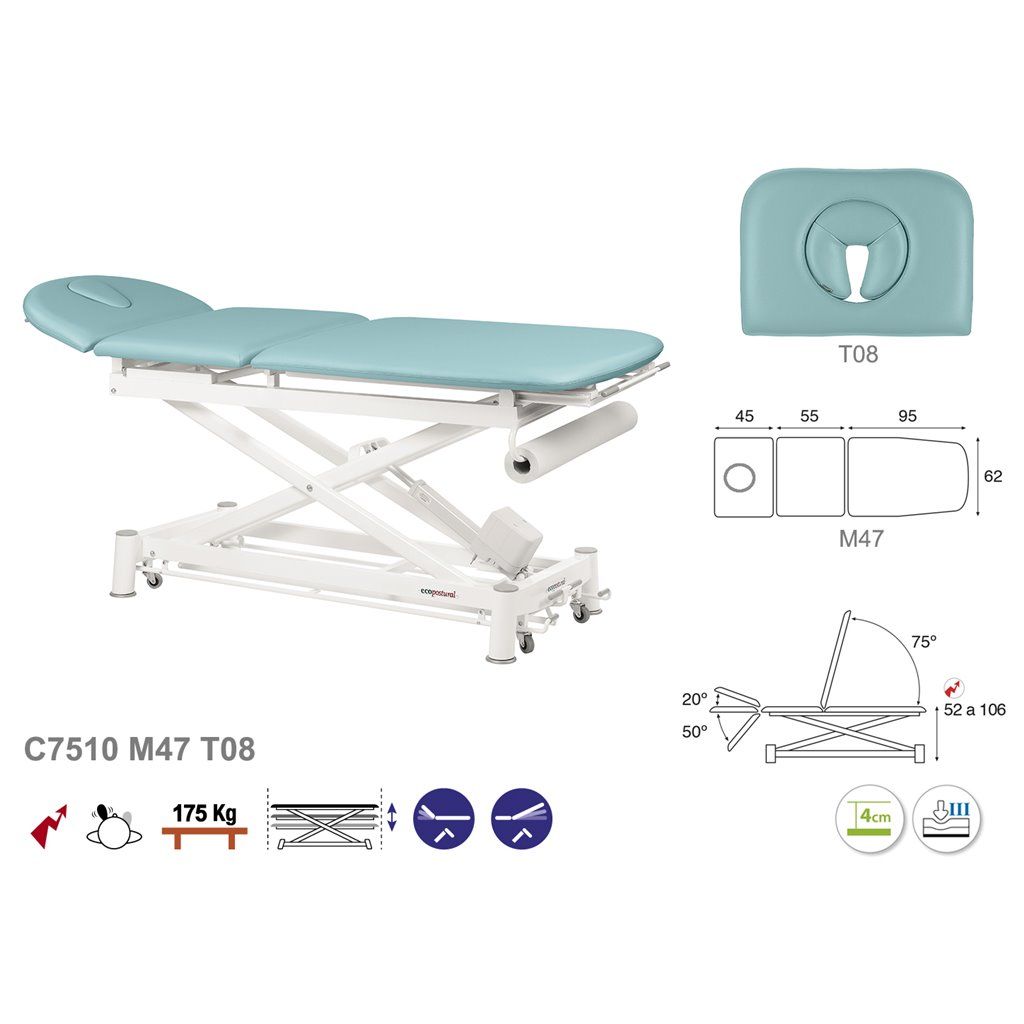 Camilla de masaje eléctrica 3 cuerpos con sistema periférico Ecopostural C7510 - Regulación de altura mediante motor eléctrico con sistema periférico- Portarrollos incorporado de serie - Altura regulable: 52 - 106 cm - Dimension estandar : 62 x 200 cm