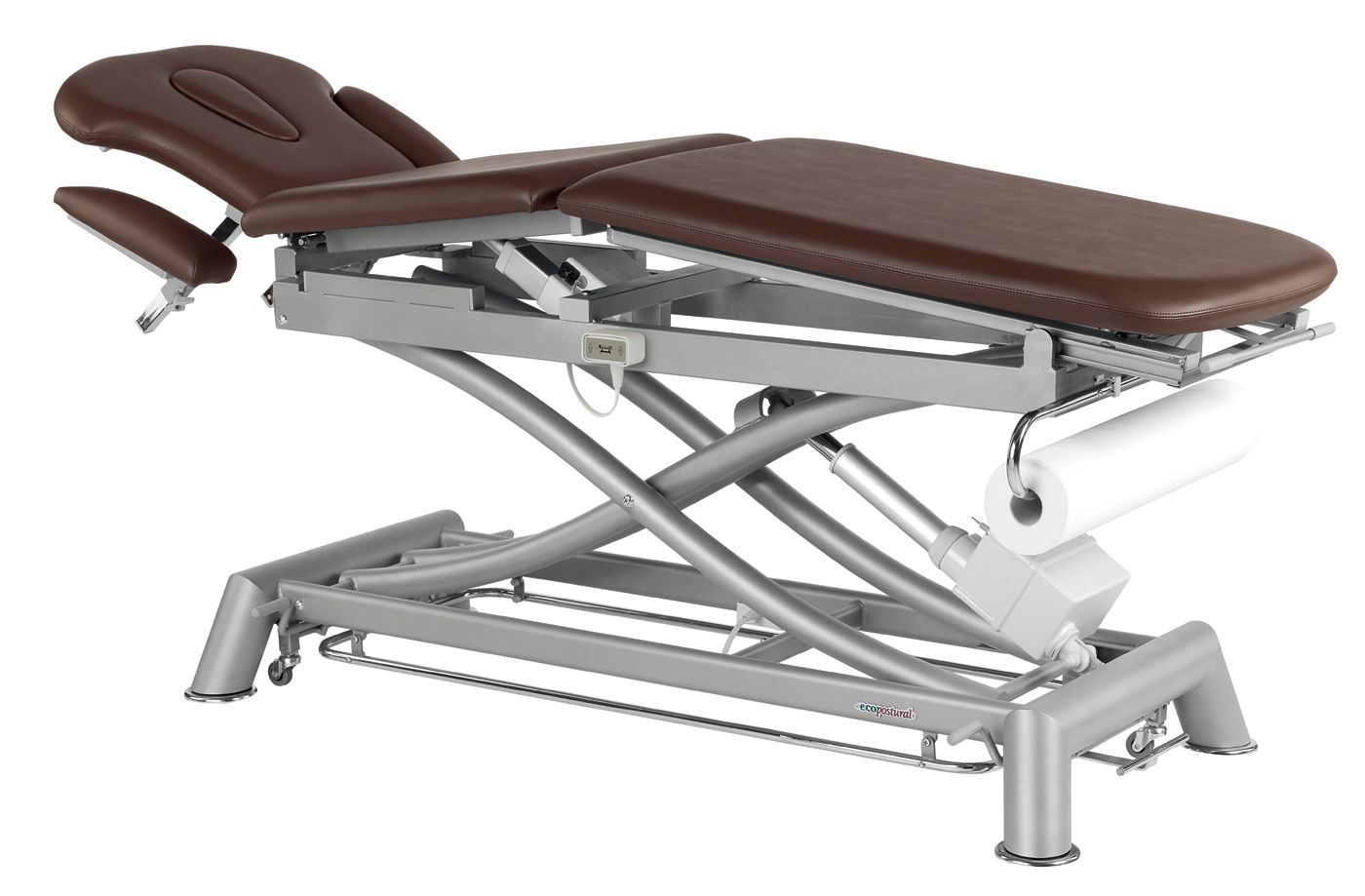 Camilla de masaje eléctrica3 cuerpos multifuncional, cabezal ergonómico y periférico Ecopostural C7930 - Dimension : 62 x 200 cm - Regulación de altura mediante motor eléctrico con sistema periférico - Portarrollos incorporado de serie - Altura regulable: 53 - 102 cm - Garantía 3 años