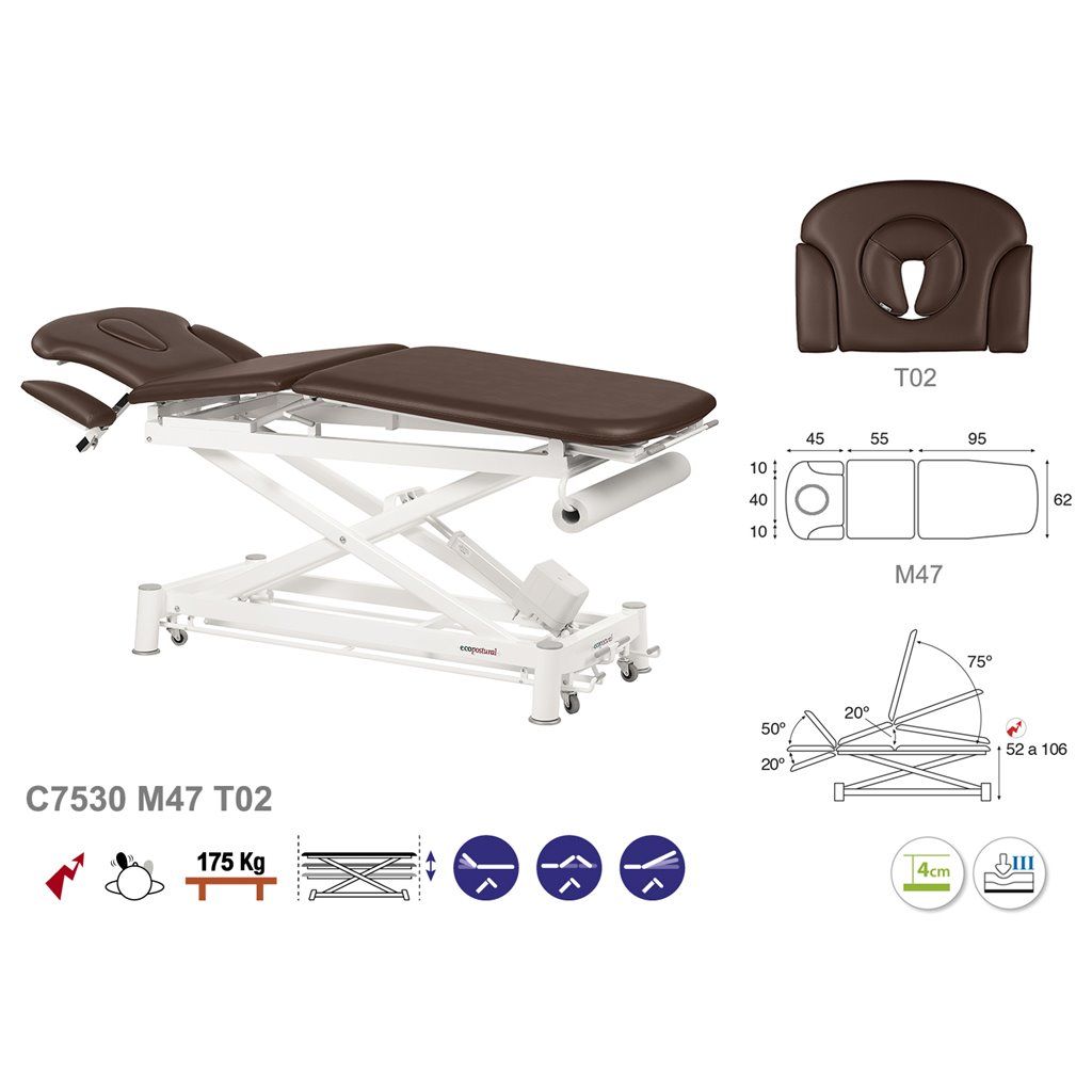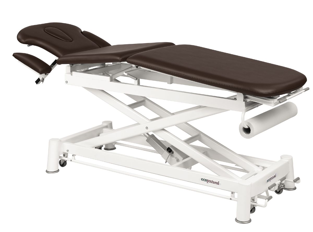 Camilla de masaje eléctrica multifuncional de 3 cuerpos con 5 secciones Ecopostural C7530 - Regulación de altura mediante motor eléctrico con sistema periférico - Portarrollos incorporado de serie - Altura regulable: 58 - 106 cm - Dimension estandar : 62 x 200 cm - Garantía 3 años