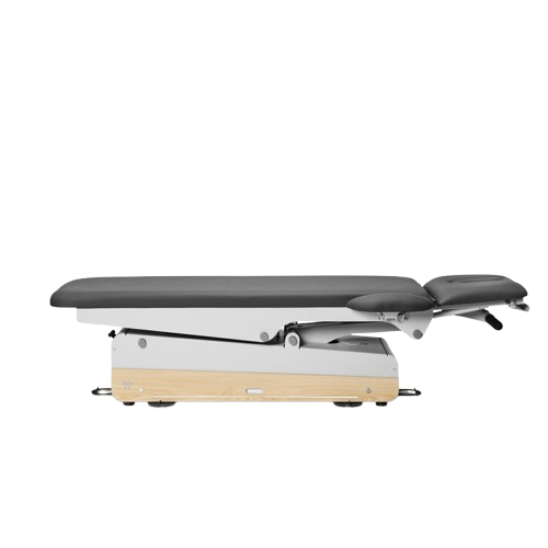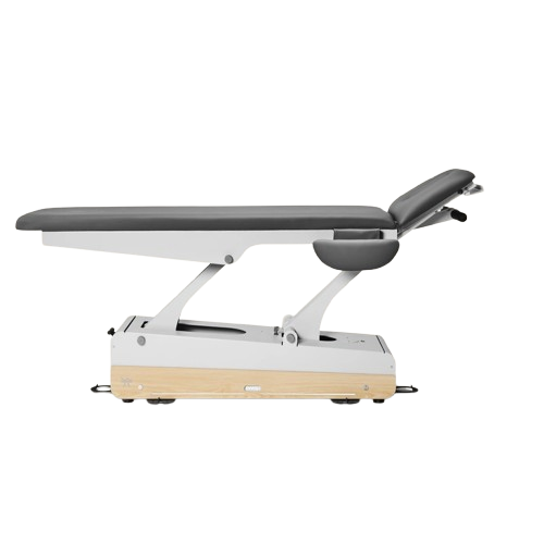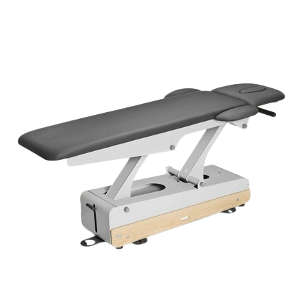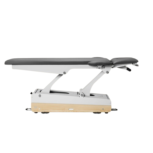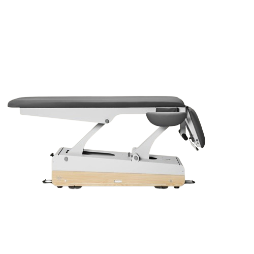 Su exclusivo sistema eléctrico, combinado con el dispositivo periférico Space Ball, permite un ajuste de altura suave, preciso y silencioso de 48 a 90 cm. El Space Ball, un innovador armazón periférico, permite ajustar la altura de la mesa médica en toda su base, sin necesidad de utilizar las manos, gracias a unos mandos circulares situados en los extremos. Esto facilita la realización de ajustes rápidos, garantizando una postura óptima para todo tipo de tratamiento, ya sea fisioterapia u osteopatía.