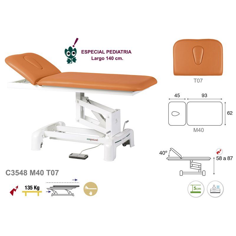 La Camilla de masaje eléctrica Ecopostural C3548 es una camilla corta especial para pediatría.