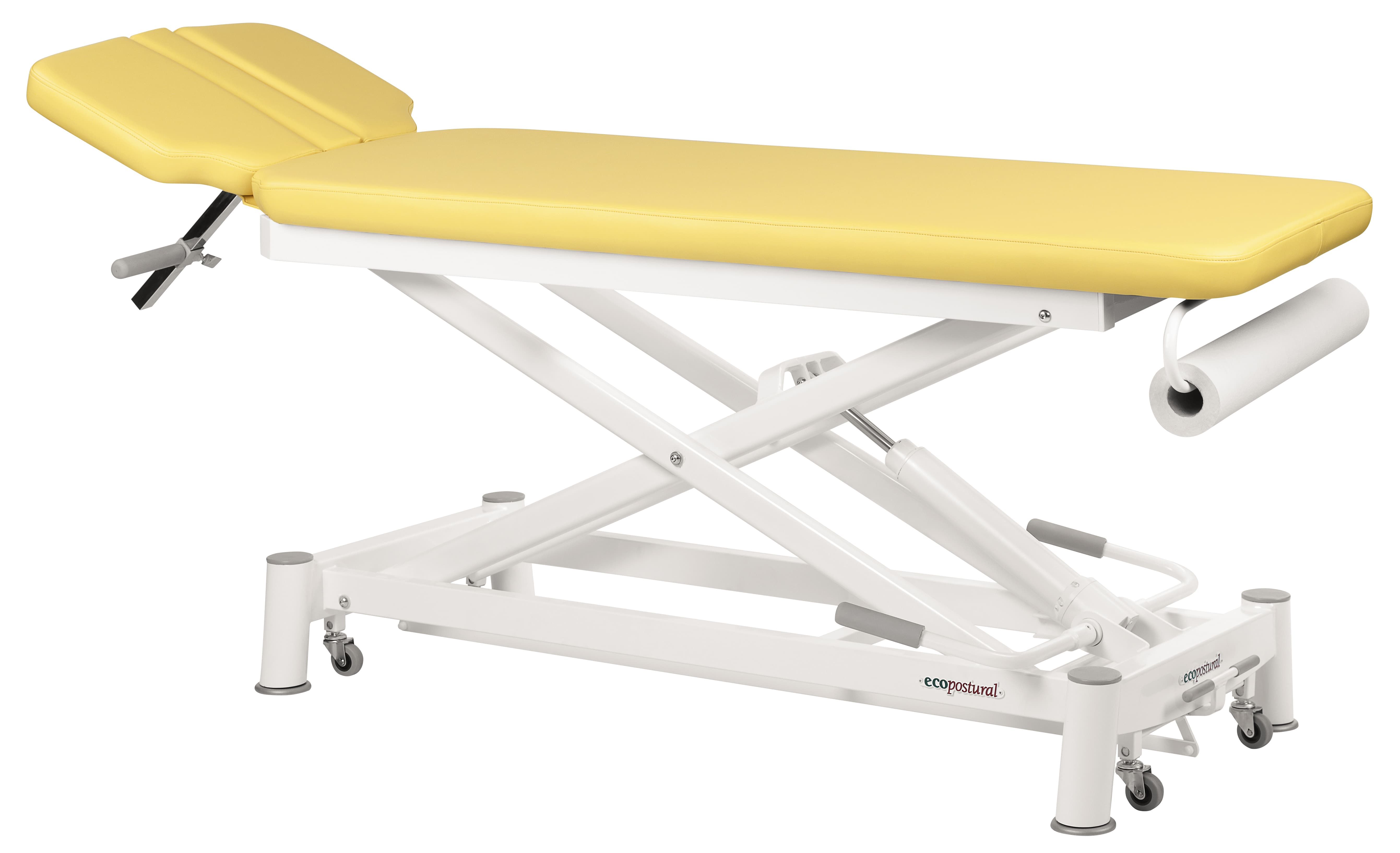 La Camilla de masaje hidráulica 2 cuerpos Ecopostural C7746 es una camilla eléctrica con regulación de altura mediante sistema de bomba hidráulica accionada mediante pedal mecánico.
