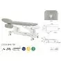 Dispone de ruedas escamoteables monopedales y portarrollos abatible. Su reposacabezas dispone de orificio facial con tapón incluido. Respaldo con cavidades faciales de 50° hacia delante y 40° hacia atrás.