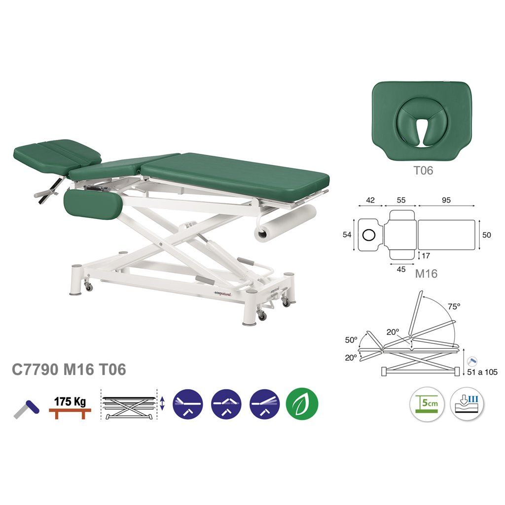 La Camilla de masaje hydraulica multifuncional Ecopostural C7790 es una camilla de masaje de 3 cuerpos con 5 secciones.