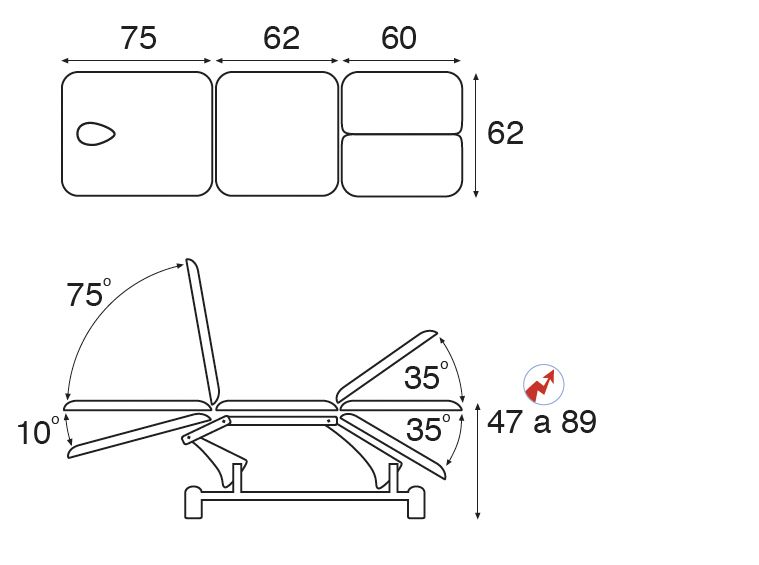 - El respaldo inferior (parte pies) permite una oscilación total de 95 grados (+80, -15).