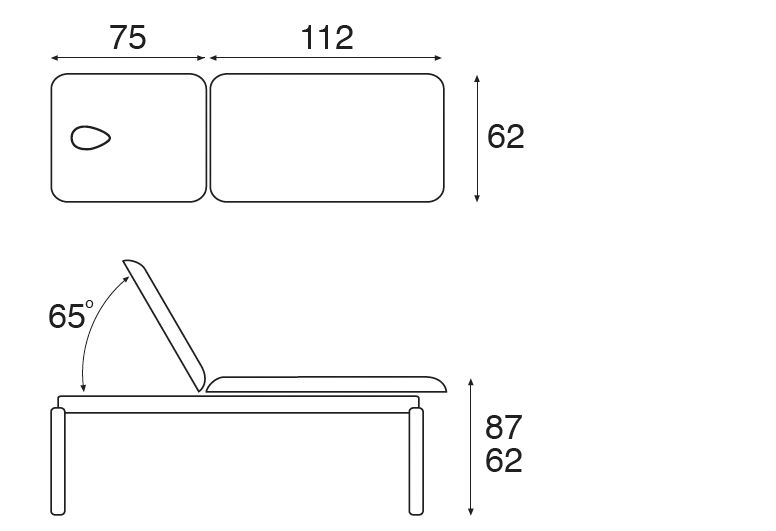 - Respaldo elevable de 0 a 70º.