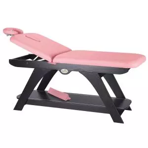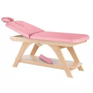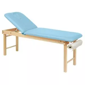 Camilla Fija de madera de dos cuerpos. - Madera de haya de primera calidad. - Respaldo elevable de 0 a 70º. - Con agujero facial.