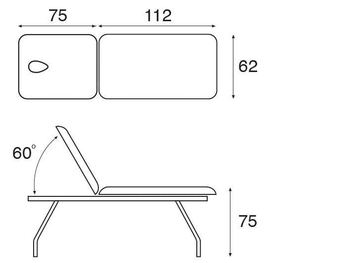 Camilla fija metalica de dos cuerpos. - Altura fija: 75 cm. - Elevación del respaldo 70º