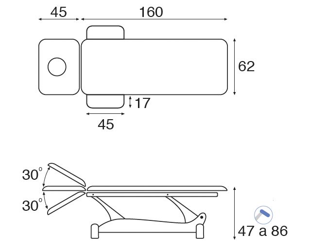 - Camilla hidráulica 2 cuerpos y 4 secciones