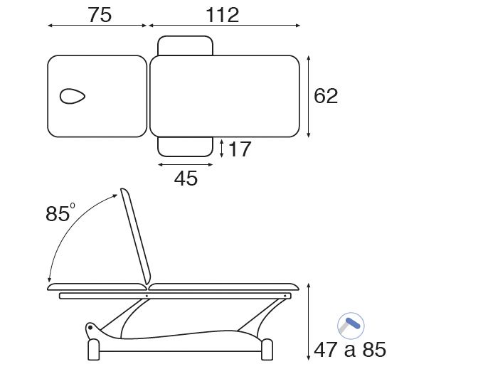 La Camilla hidráulica Ecopostural C3751 se regula en altura mediante sistema hidráulico. Dispone de ruedas escamoteables, mediante pedal único. El respaldo superior permite una elevación de 75 grados.