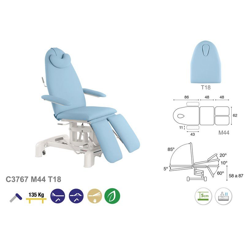 Camilla hidráulica sillón podología de 3 cuerpos Ecopostural C3767M44