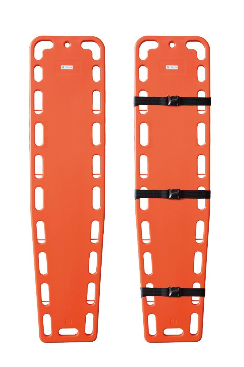 Gracias a su estructura robusta y ligera, esta superficie dura puede soportar hasta 200 kg sin dejar de ser fácil de manejar. Está equipada con tres correas de sujeción, que garantizan una sujeción óptima del paciente y reducen el riesgo de agravamiento de las lesiones durante los desplazamientos.