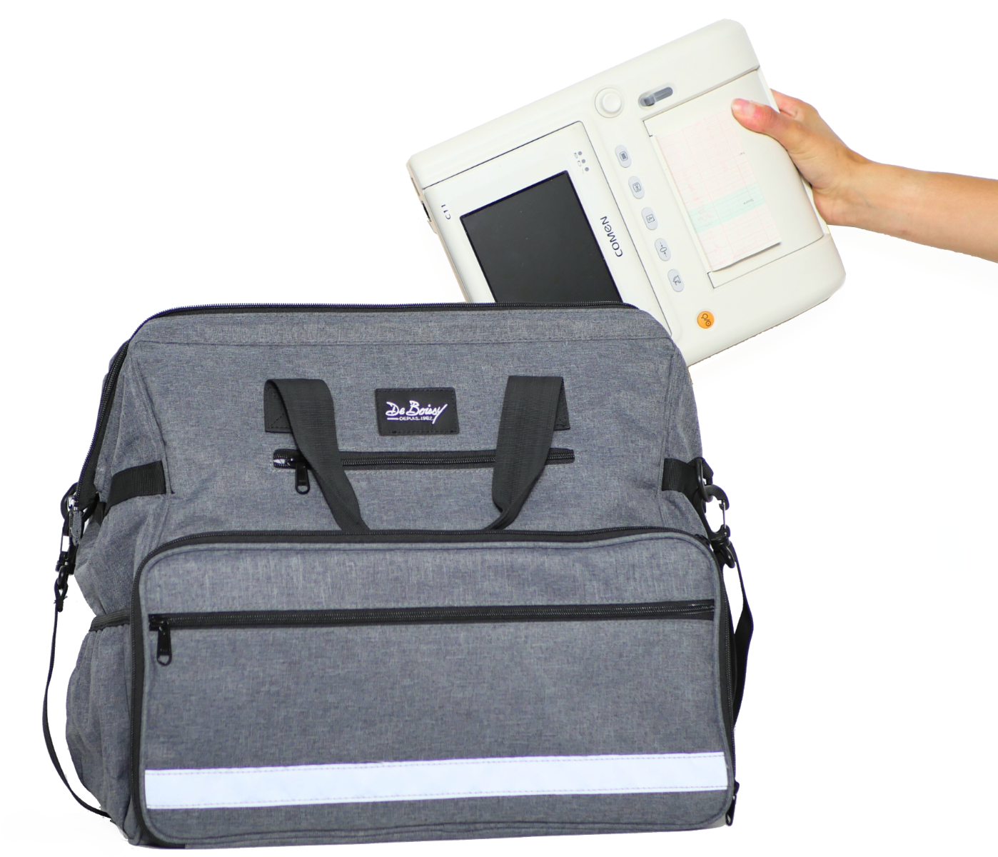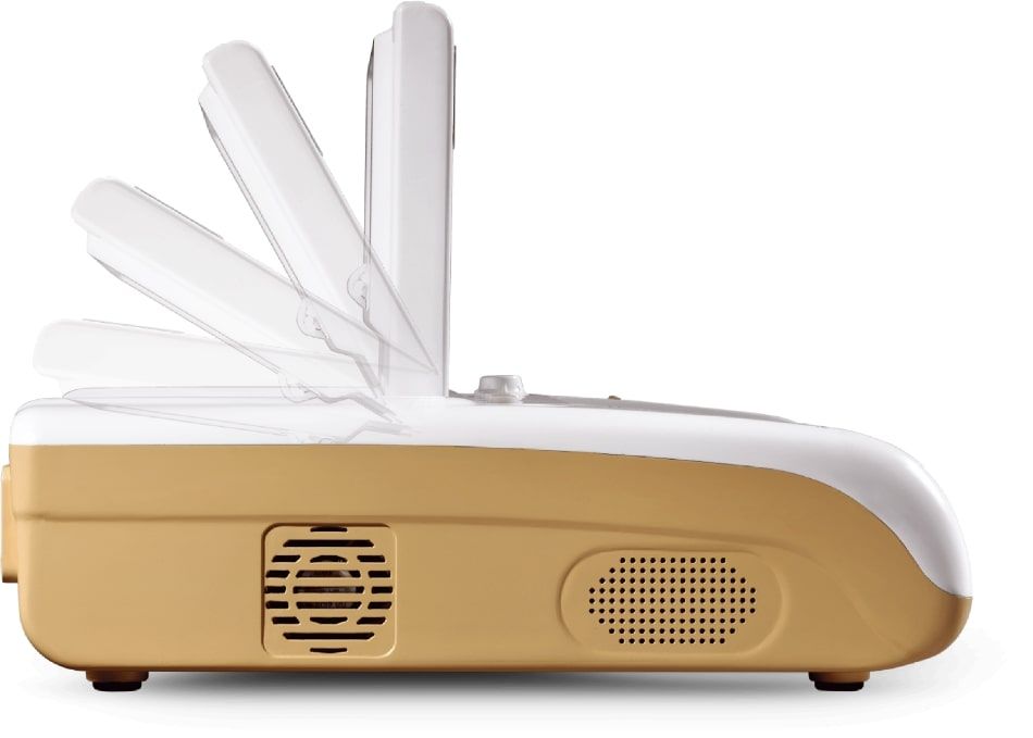 Gracias a su conectividad versátil, permite un monitoreo remoto con o sin cables en la estación central de monitoreo. Su diseño compacto con una pantalla LCD a color de 5,7'' ajustable de 0 a 90° garantiza portabilidad y comodidad óptimas, facilitando su transporte con su asa ergonómica o su elegante bolso mini Eiffel opcional.