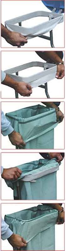 - Fijación fácil de la bolsa: gracias al anillo perimetral de goma, la bolsa se fija fácilmente y permanece en su lugar, facilitando el reemplazo rápido y limpio de las bolsas.