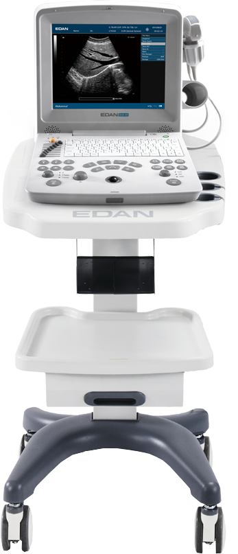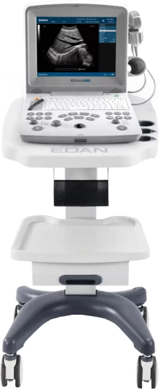 El carro con ruedas es una solución práctica para mover los ecógrafos portátiles de ultrasonido U50 y DUS60 de Edan.