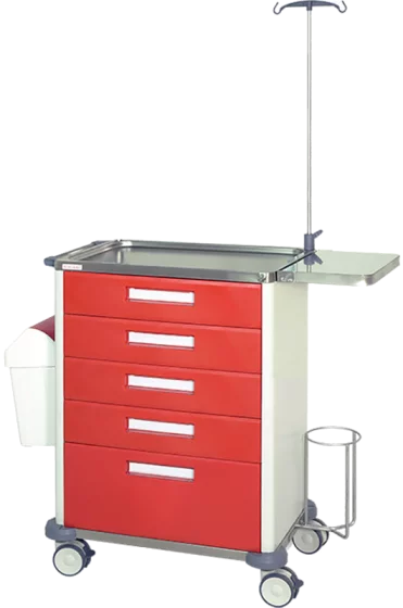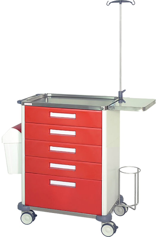 Diseñado para entornos médicos en los que cada segundo cuenta, el carro de urgencias Hidemar H775 PRB está equipado para ofrecer rapidez, seguridad y organización. Su estructura reforzada de polímero ABS y acero inoxidable garantiza resistencia y durabilidad, mientras que sus ruedas giratorias de 100 mm con freno y parachoques de anilla facilitan un desplazamiento fácil y seguro.