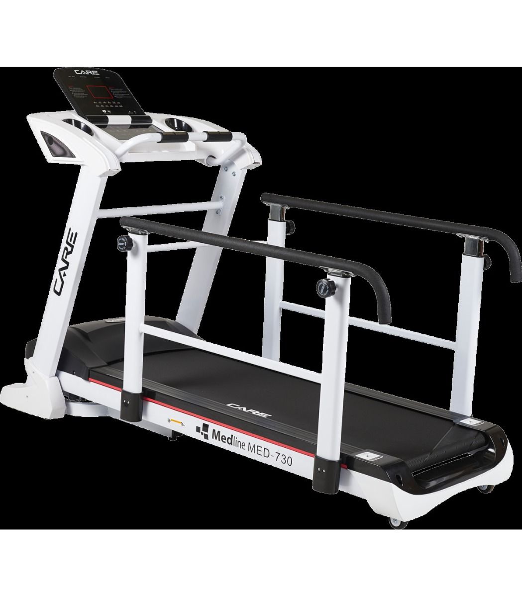 Esta cinta para rehabilitación dispone de pasamanos para mantenerle seguro mientras hace ejercicio.
