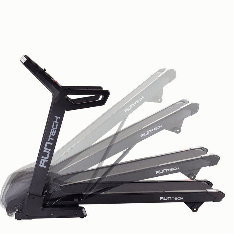 La cinta de correr plegable Run Tech-A Semi-Pro DKN combina rendimiento y durabilidad para ofrecerle un dispositivo completo de fitness: equipado con una banda de correr con dimensiones de 146 x 53 cm. Equipada con la tecnología de absorción de impactos, el tapis ortopédico de 3.3mm de grosor le asegura comodidad, seguridad y protección para sus rodillas. Su motor de 2,5 CV y 4 CV le permitirán alcanzar una velocidad maxima de 22kh/h con una inclinación de 12%. Equipado de una consola LCD que le mostrara datos como velocidad, tiempo, distancia, calorías quemadas y frecuencia cardíaca, esta ultima gracias a los sensores incluidos en el manubrio. Podrá de igual manera llevar un registro de sus sesiones para motivarlo, progresar y alcanzar sus objetivos. consola LCD muestra la velocidad, tiempo, distancia, número de calorías quemadas y la frecuencia cardíaca, esta ultima es tomada por los manubrios que incluyen sensores para medir la frecuencia cardíaca. Tiene 24 programas de entrenamiento y dos perfiles de usuario. La caminadora le permitirá trabajar piernas, tobillos, muslos y abdominales. Compatible con la aplicación gratuita para tablet DKN iWorld compatible con iOS y Android.