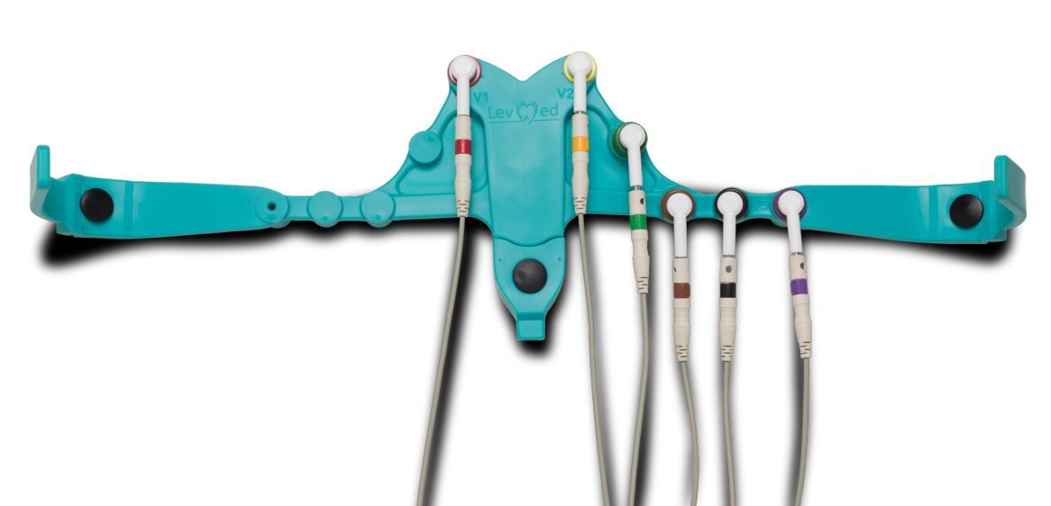 La correa de ECG Levmed 11001 Universal AllBrand™ con asas se puede conectar al cable ECG que se conecta a su vez al paciente.
