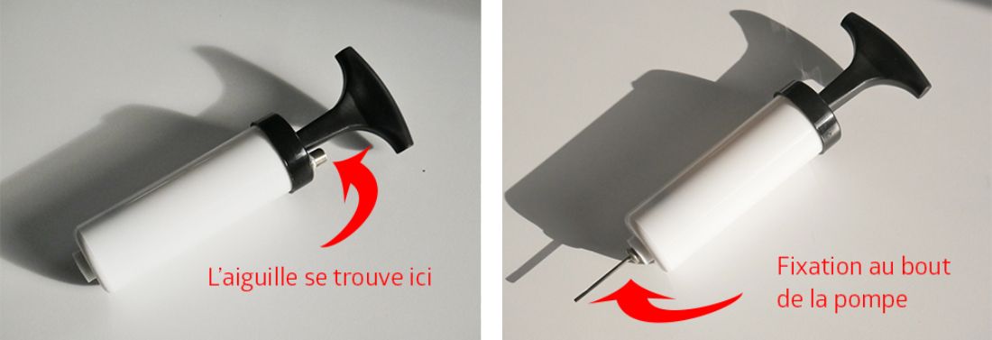 - Una bomba para inflar según las necesidades para un mejor confort al sentarse (la aguja de la bomba está integrada en el cuerpo de la bomba)