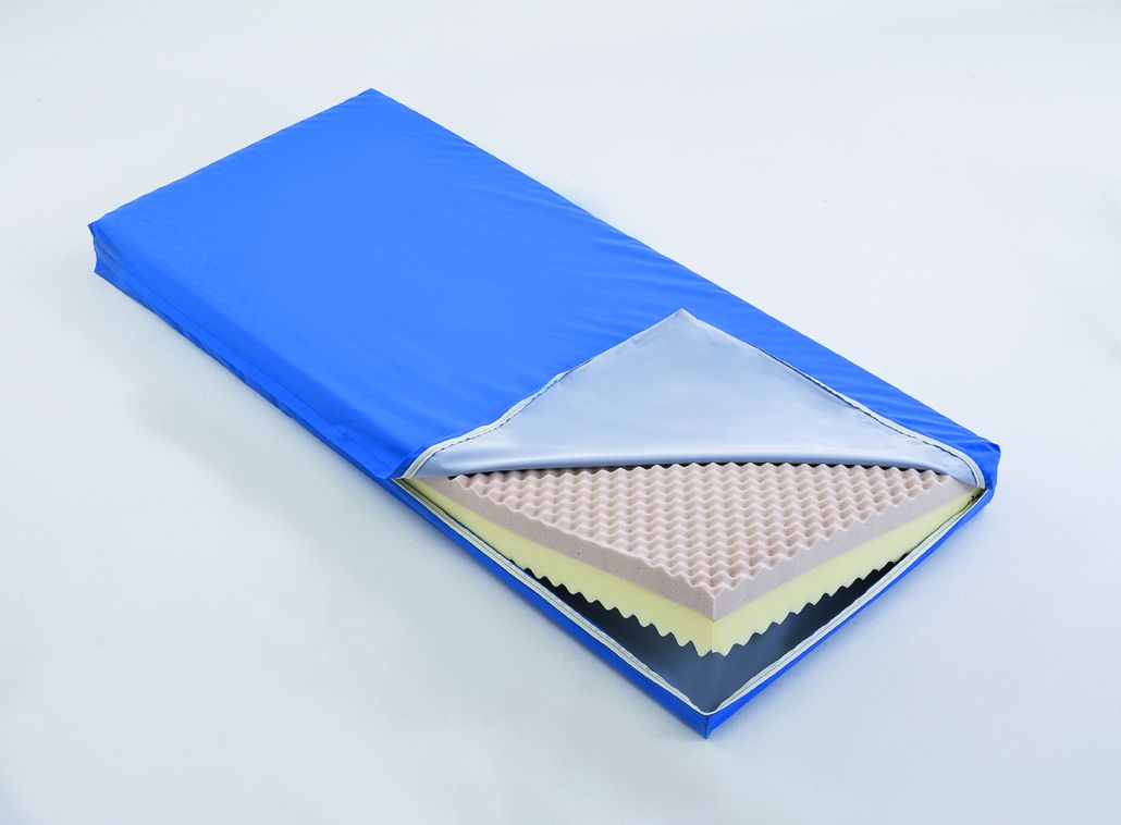 Este colchón está formado por una capa superior de espuma viscoelástica con memoria de alta densidad y una base de espuma de alta resistencia. Concebido para pacientes con nivel medio y alto de desarrollo de úlceras por presión.
