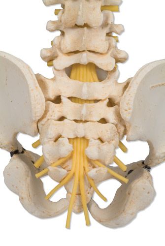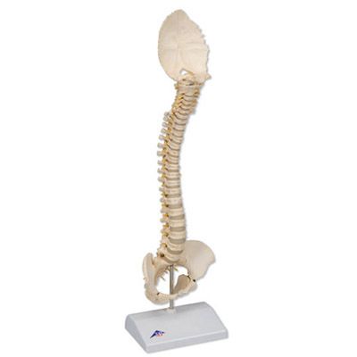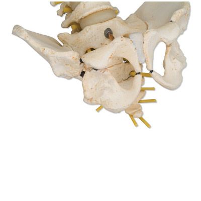 Este modelo realista de la columna vertebral de un niño de alrededor de 5 años es especialmente interesante para la anatomía, la pediatría, la ortopedia y la radiología pediátrica. Gracias al material único con el que se ha fabricado apenas se diferencia de una columna vertebral natural. La columna vertebral flexible se presenta montada sobre una base con hueso occipital, pelvis, sacro y coxis. Asimismo reproduce la médula espinal del conducto vertebral con cauda equina y el nacimiento de las raíces nerviosas. El modelo permite estudiar de forma sorprendente el estadio característico del crecimiento óseo correspondiente a la etapa de crecimiento de un niño de 5 años de edad. También muestra: