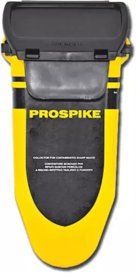 Práctico y seguro, el contenedor Spencer Pro Spike se puede desechar fácilmente con su contenido, facilitando así la gestión responsable de desechos punzantes y cortantes.