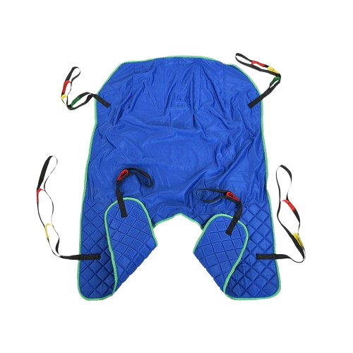 La cinta de elevación completa está diseñada para asegurar y simplificar todas las transferencias, ya sea de la cama a la silla o de la grúa al suelo. Su acolchado de espuma en las patas garantiza un confort óptimo a la vez que mantiene seguro al usuario.