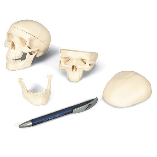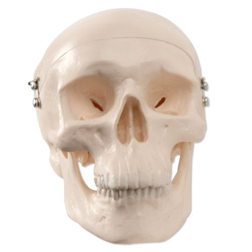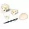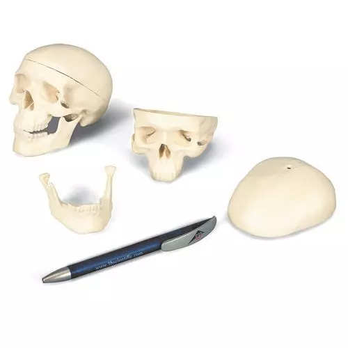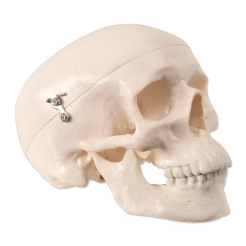 Cráneo miniatura de 3 piezas A18/15 - Detalles de las estructuras anatómicas - Desmontable en calota craneal, base craneal y mandbula - Dimensiones: 10 x 8 x 8 cm