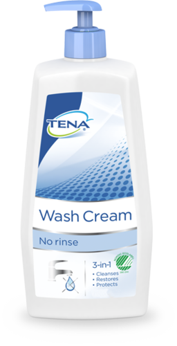 Ideal para los casos de incontinencia imponiendo una limpieza frecuente, TENA Wash Cream es una emulsión suave que limpia, restaura y protega la piel.