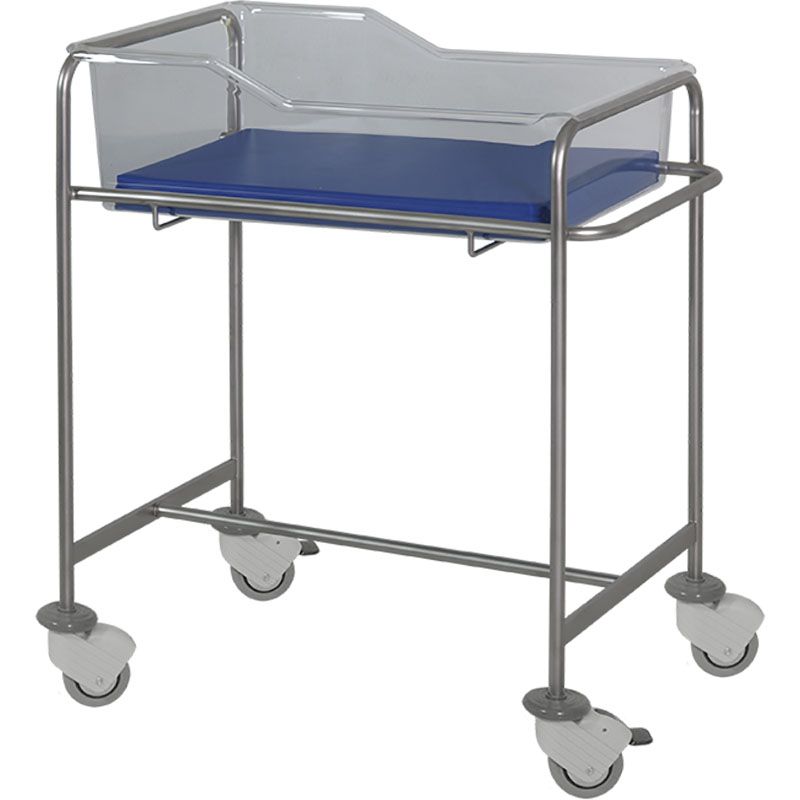 La cuna Hidemar esta hecha de plástico termoformado trasparente. Estructura de acero esmaltado con medidas interiores de: 65x35cm. Ruedas de 100mm de diametro con parachoques con dos frenos.
