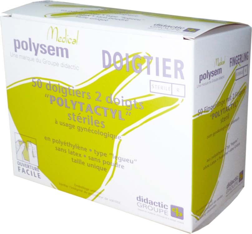 Denominación : Dedales 2 dedos de polietileno estériles sin polvo Polyactyl (caja de 50)