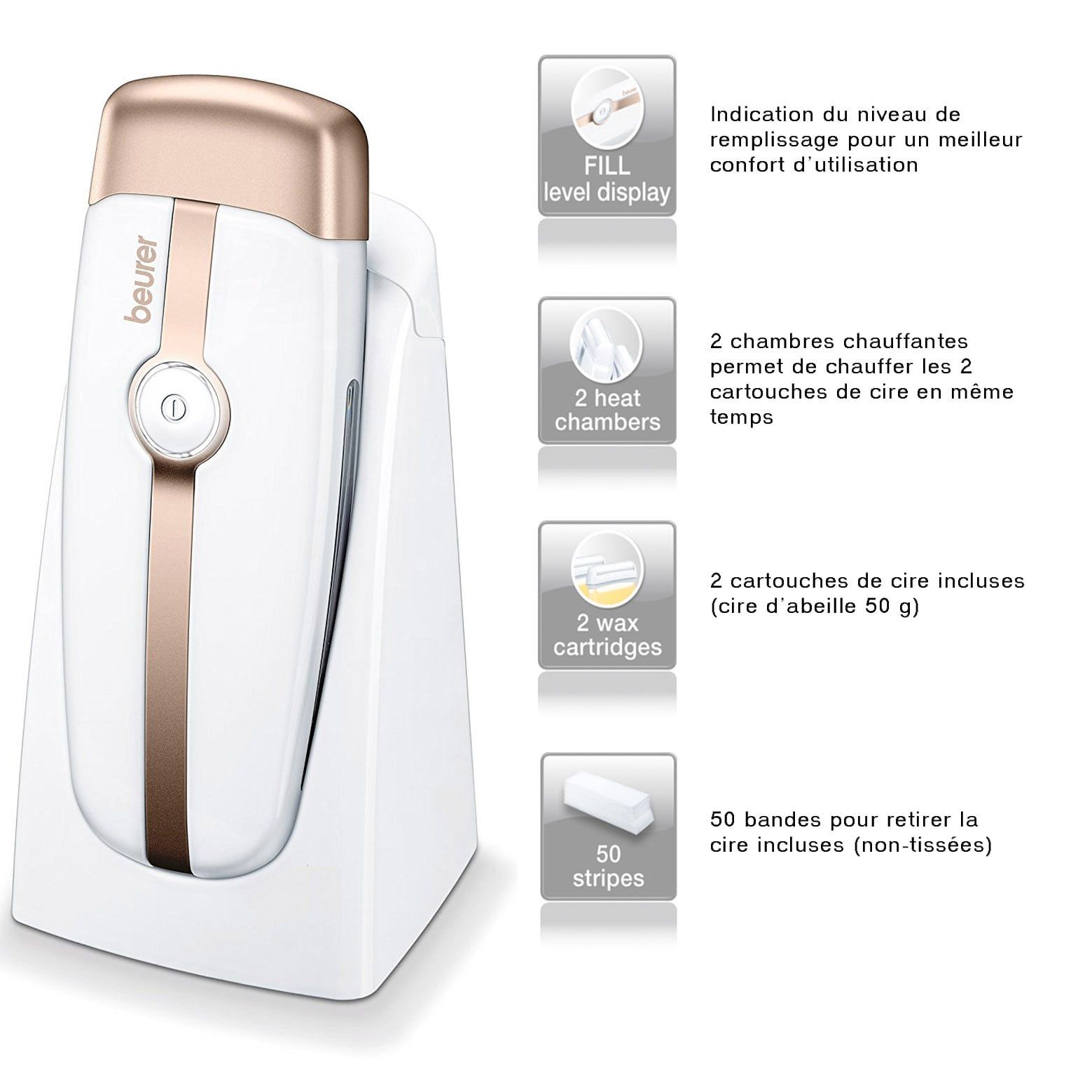 - La cera hidrata la piel y la relaja. Gracias a las 2 cámaras independientes de calentamiento, pueden calentarse dos cartuchos de cera a la vez.
