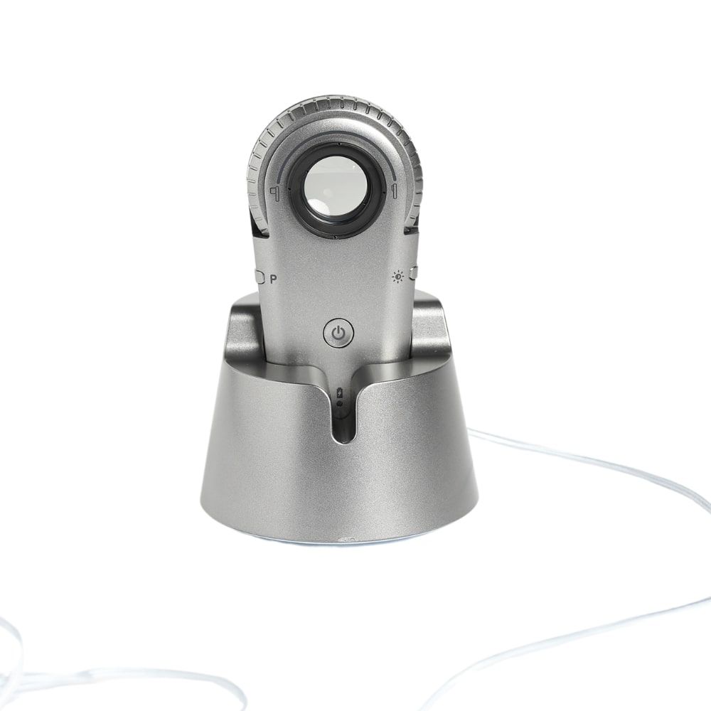 - Soporte de carga magnético USB: recargue fácilmente y de manera segura su dermatoscopio gracias al soporte de carga magnético USB. Esta función práctica prolonga la vida útil de su dispositivo y asegura un uso estable y prolongado.