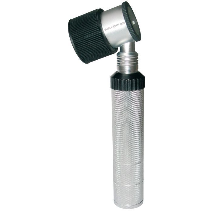 Dermatoscopio Kawe Eurolight D30 - Intensidad luminosa 2,5 V aprox. 13 000 lux - Con aprox. 10 aumentos - Ajuste del enfoque de –6 hasta +3,5 dpt - Tiempo de vida útil de luminaria 20H - Iluminación de intensidad uniforme - Mango a pilas/recargable C, de metal - Cierre tipo clic - Reóstato con reductor de luz - Incluido 1 frasco de gel para dermatoscopia Derma-Gel, 250 ml - Pilas: 2 Baby (tipo C) - Referencia : 01.31130.001