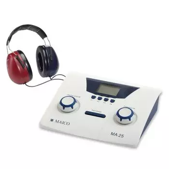 El audiómetro permite distinguir entre hipoacusia de transmisión (provocada, por ejemplo, por un tapón de cerumen o una otitis) y hipoacusia neurosensorial (relacionada con una pérdida auditiva sensorial o neurológica). Antes del examen, se recomienda encarecidamente utilizar un otoscopio médico para verificar el estado del canal auditivo.
