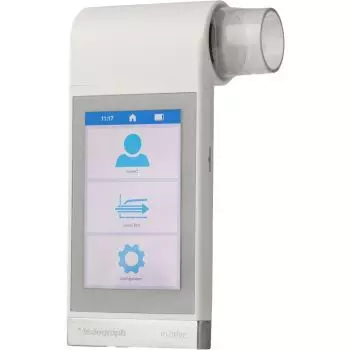 El espirómetro electrónico es un aparato de medida destinado a calcular la capacidad respiratoria mediante el volumen de aire espirado y generalmente es realizada por el neumólogo. Los espirómetros y los caudalímetros son capaces de medir el flujo espiratorio máximo y el volumen espiratorio máximo por segundo, para poder así medir su capacidad pulmonar. Gracias a el espirómetro, su médico podrá detectar si hay anomalías a nivel de las vías respiratorias, si hay algún fallo su médico podrá darse cuenta y le prescribirá el tratamiento adecuado en función de sus necesidades (patología o infección). Los espirometros electrónicos son el tipo de espirómetros más utilizados por los particulares, ya que son pequeños y fáciles de usar. Existen modelos que son preferidos por los especialistas debido a sus diversas funcionalidades, como los espirómetros Vitalograph de alta precisión que encontrará en diferentes modelos y que están equipados con función USB para poder transferir los datos colectados y así generar una interpretación en un archivo PDF. Le recordamos que si usted es particular, la interpretación de resultados del espirómetro deben de hacerse por un profesional.