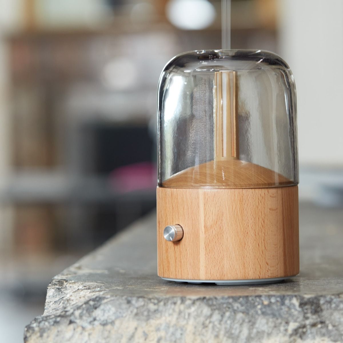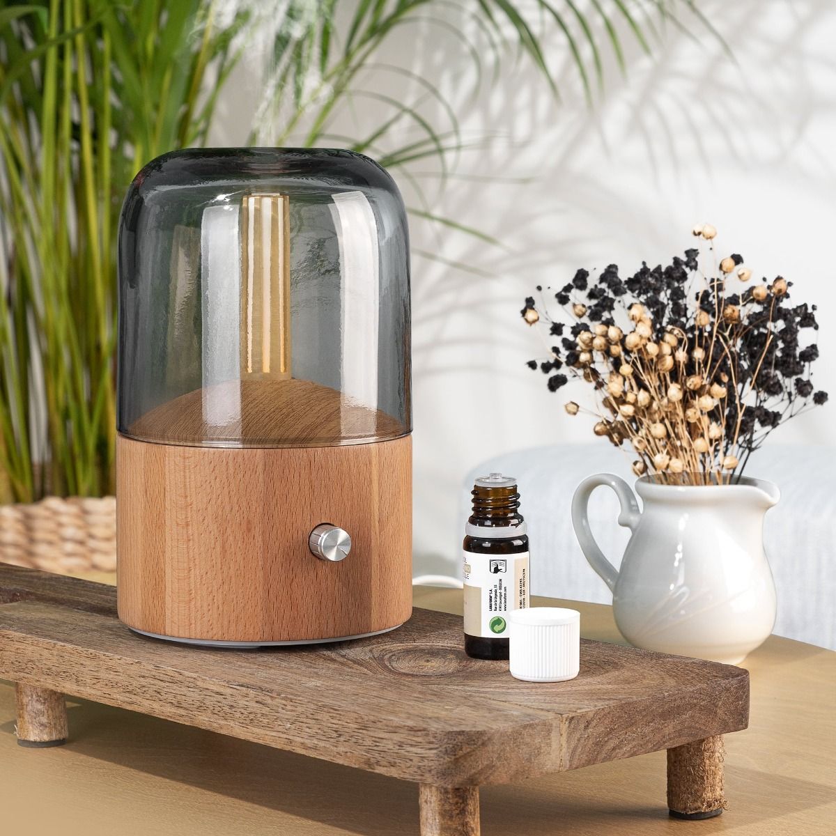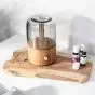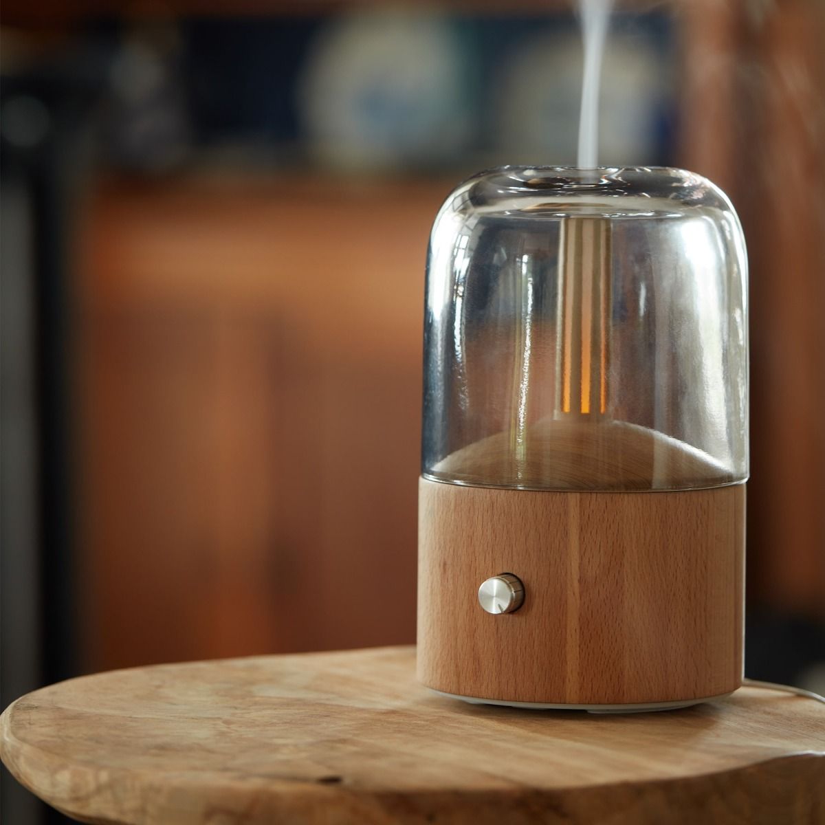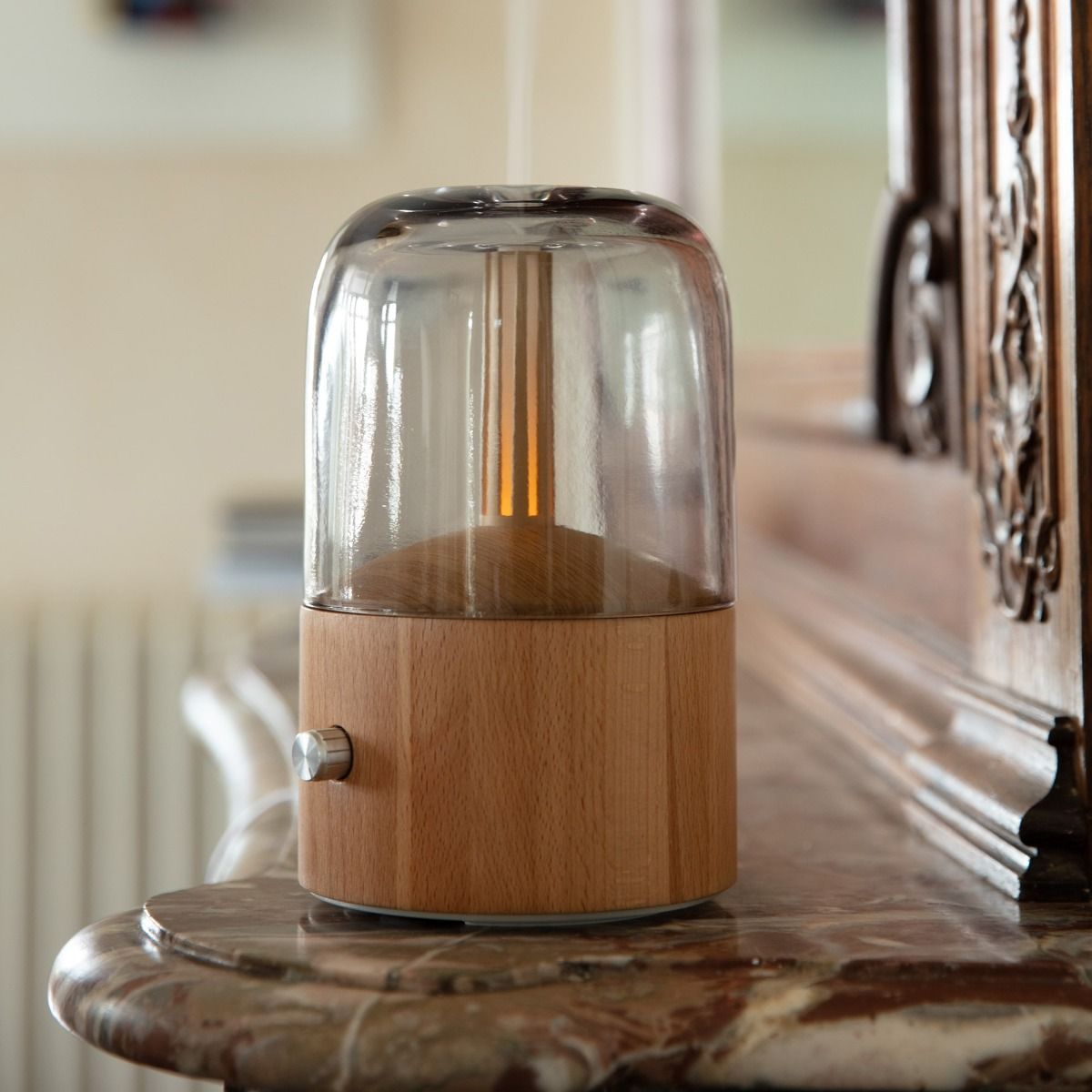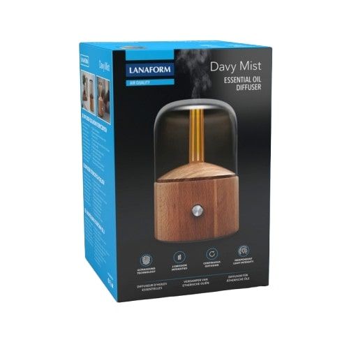El difusor de aceites esenciales Davy Mist de Lanaform combina elegancia y rendimiento para crear un ambiente relajante en cualquier habitación. Fabricado en madera de haya y cristal, su refinado diseño recuerda a una linterna, lo que lo convierte tanto en un objeto decorativo como en un eficaz difusor ultrasónico.