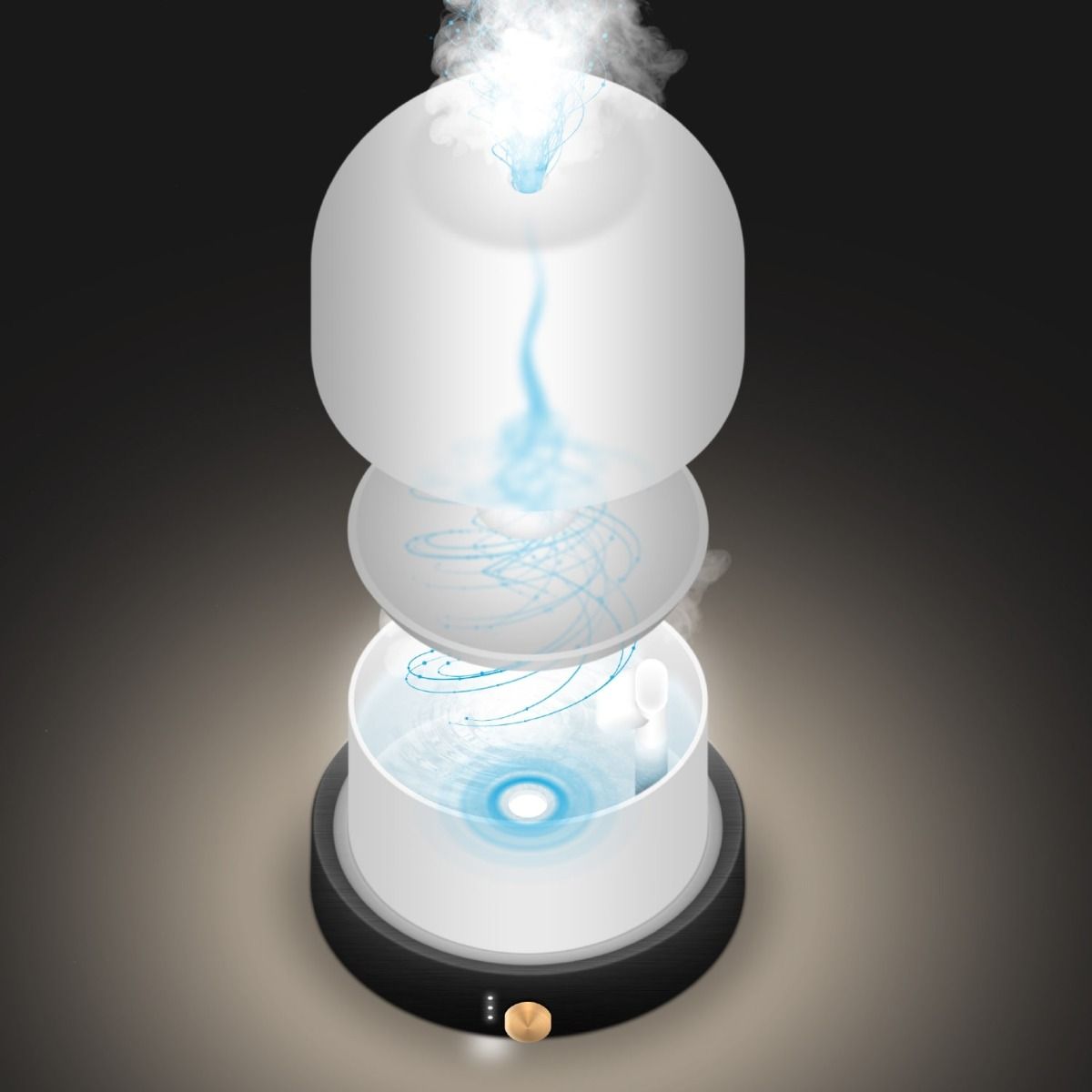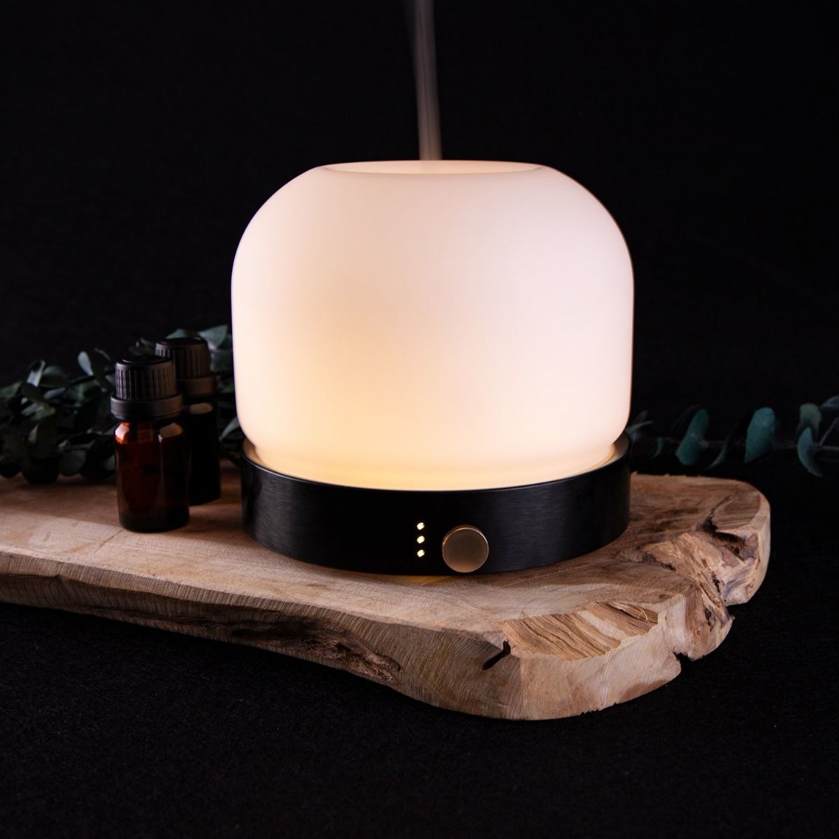El difusor Eclipse también tiene un diseño atractivo, con una base de metal anodizado y una cúpula de cristal opalino para un aspecto sobrio y elegante. Tiene una capacidad de 280 ml, difusión continua o programable (1h, 3h u 8h), y un apagado automático para una total tranquilidad.