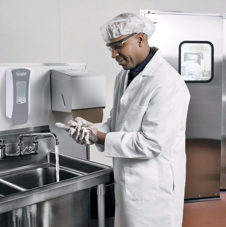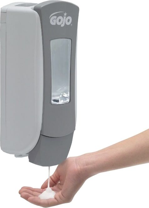 El dispensador manual de jabón Gojo ADX es especialmente adecuado para entornos médicos y paramédicos debido a su diseño elegante, que se integra fácilmente en diversos espacios como hospitales, consultorios médicos y laboratorios.