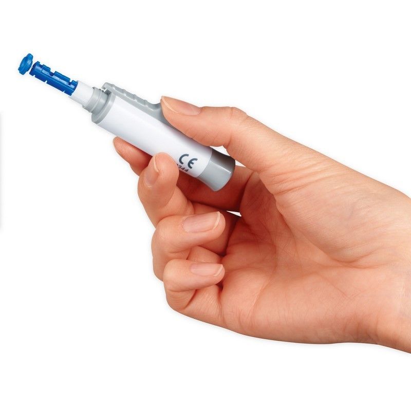 Lancetas ajustables - Medición suave - Gracias a la tapa AST, Se puede realizar la medición en diferentes partes del cuerpo.