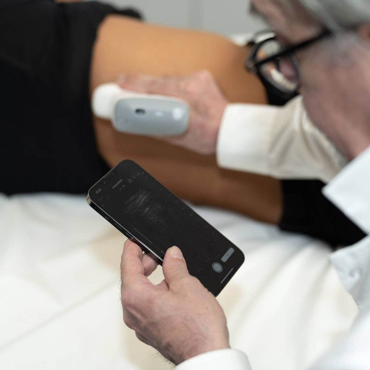 Su sistema multifrecuencia (3,5 MHz, 5 MHz y 7,5 MHz) ofrece una exploración detallada de las estructuras anatómicas, desde los tejidos superficiales hasta los órganos profundos. Este ecógrafo ultraportátil está especialmente indicado para medicina general, neumología, urología y medicina de urgencias.